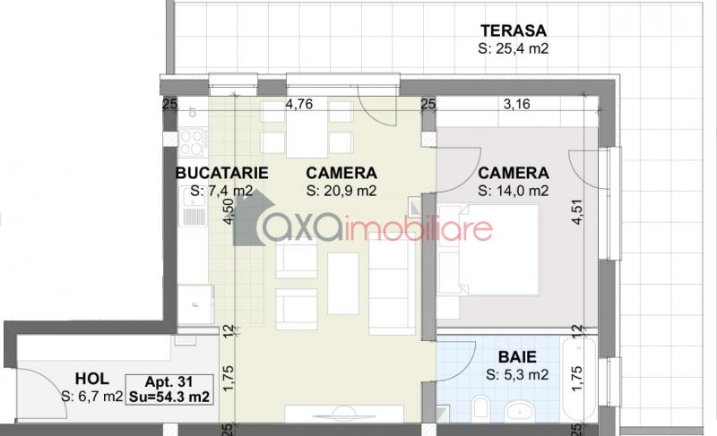 Apartment 2 rooms for sell in Cluj-napoca, Someseni ID 4855