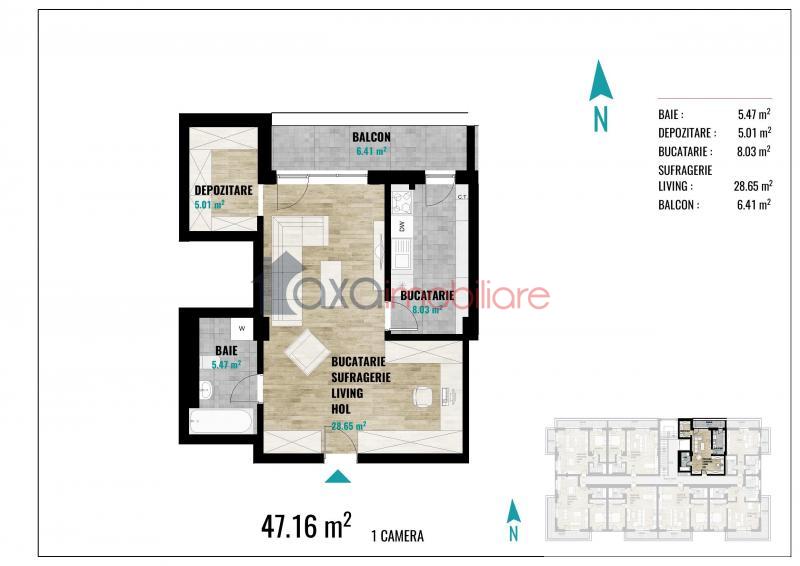 Vindem apartament cu 1 camera, spatios si semifinisat, situat in Cluj-Napoca, in zona Calea Turzii, pozitionat la etajul 4 / D+P+3E+4ER-7ER, intr-un bloc nou cu lift.