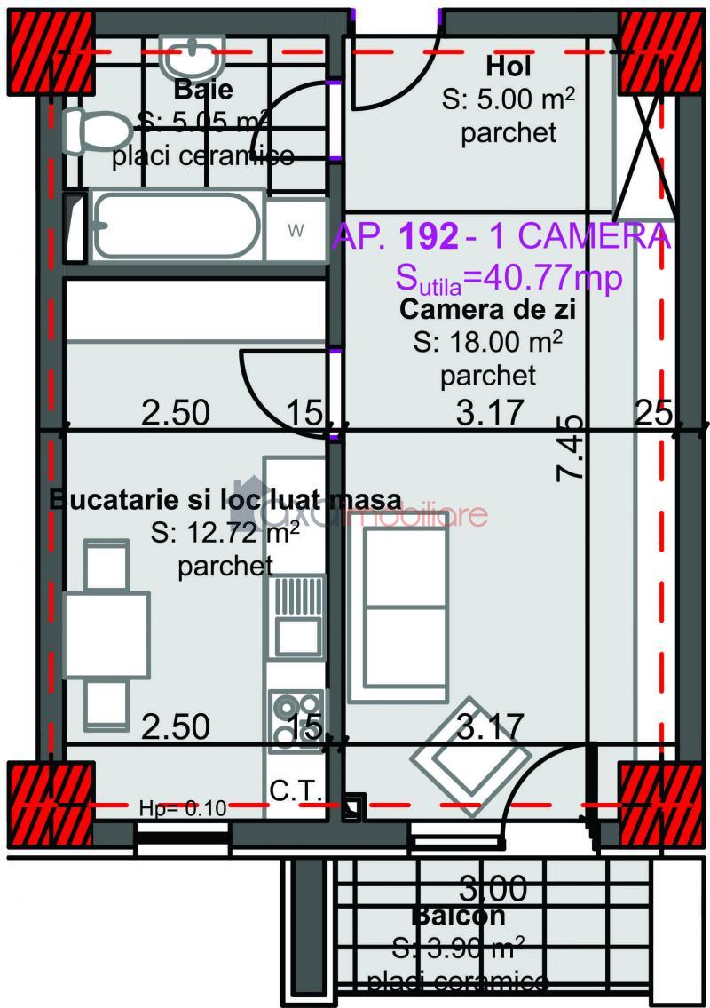 Oferim spre vanzare apartament cu 1 camera, decomandat, suprafata utila 40.77 mp, semifinisat, situat in Cluj-Napoca, in cartierul Marasti, in apropiere de Kaufland.