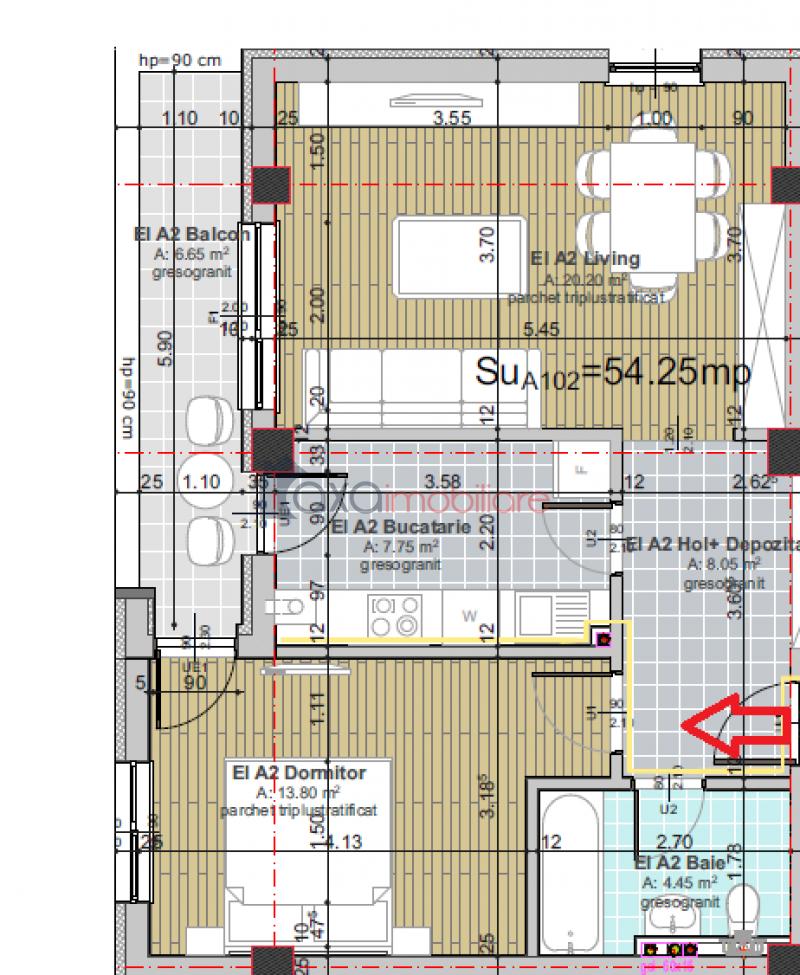 Suprafata apartamentului este de 54.25 mp, este pozitionat la etaj intermediar intr-un imobil nou (S+P+4E) si dispune de compartimentare decomandata.