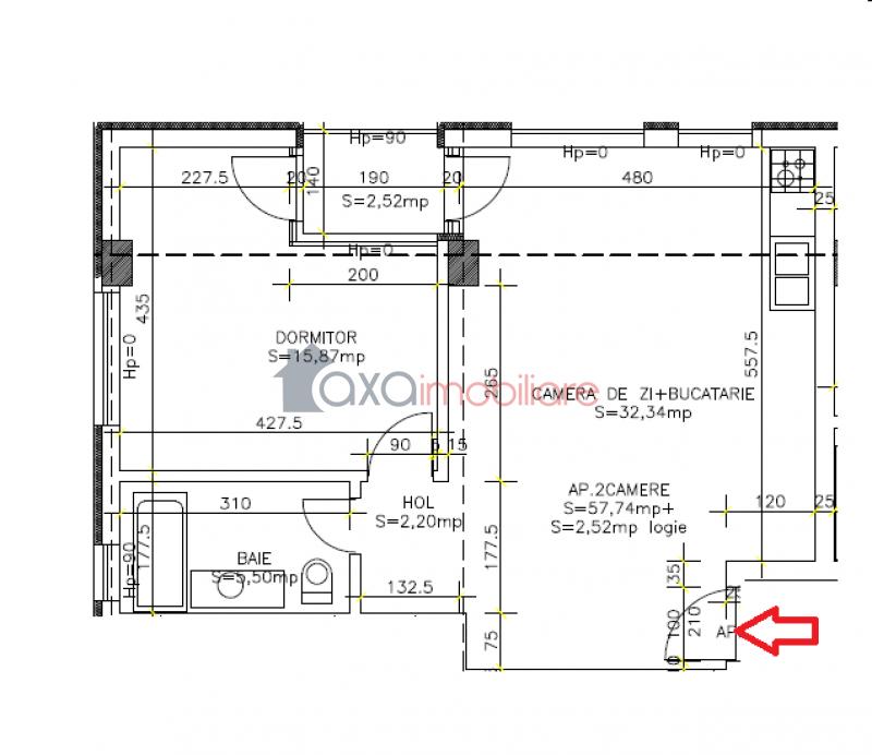 Suprafata utila este de 57.74 mp.
