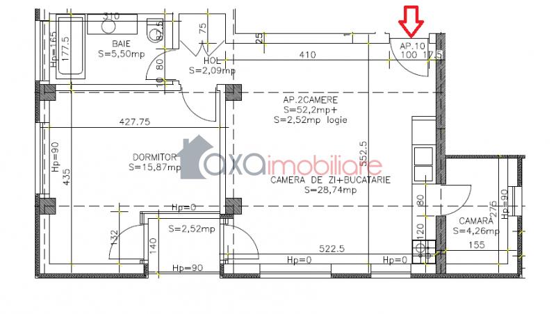 Compartimentare: hol, living cu bucatarie open space, 1 dormitor, 1 baie, 1 logie si 1 camara.