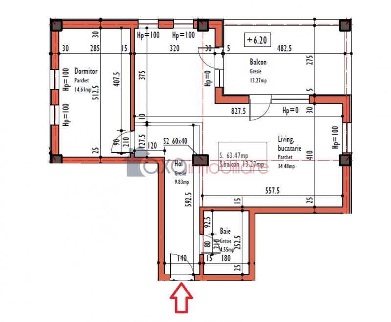 Suprafata apartamentului este de 63.47 mp utili.