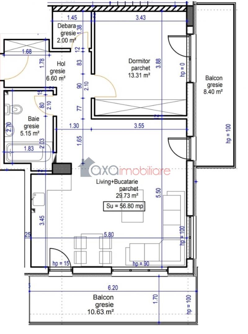 Suprafata utila este de 56.80 mp + 2 balcoane.
