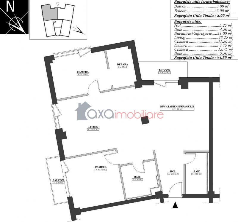 De vanzare apartament cu 3 camere, cu suprafata utila de 94 mp, situat in zona strazii Plopilor.