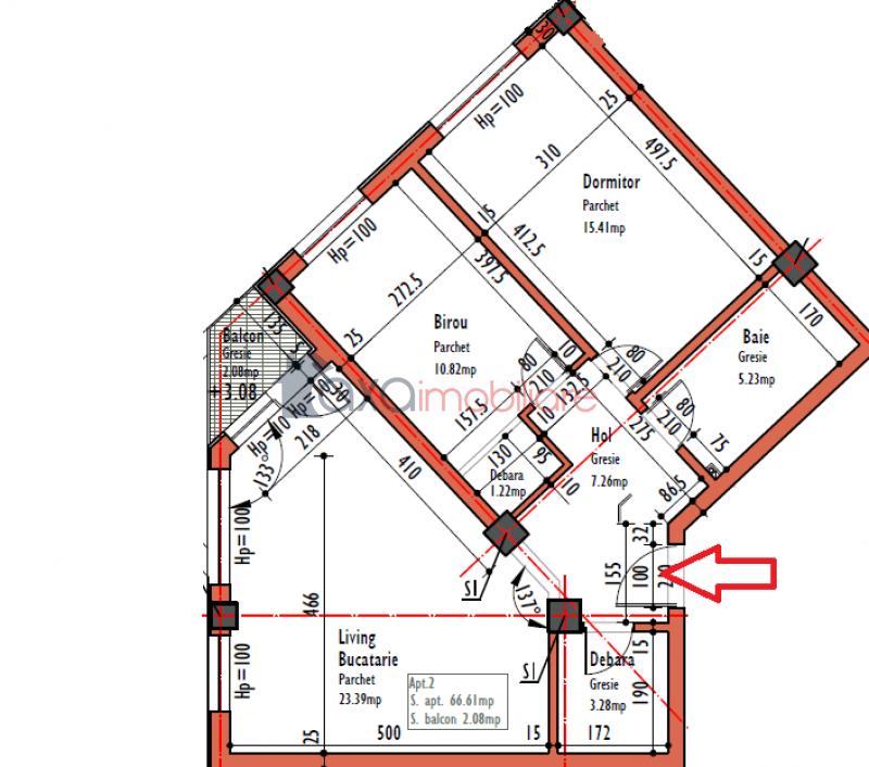 Compartimentare: 1 living cu 1 bucatarie de tip open space, 1 hol, 2 dormitoare, 1 baie, 1 debara si 1 balcon.
