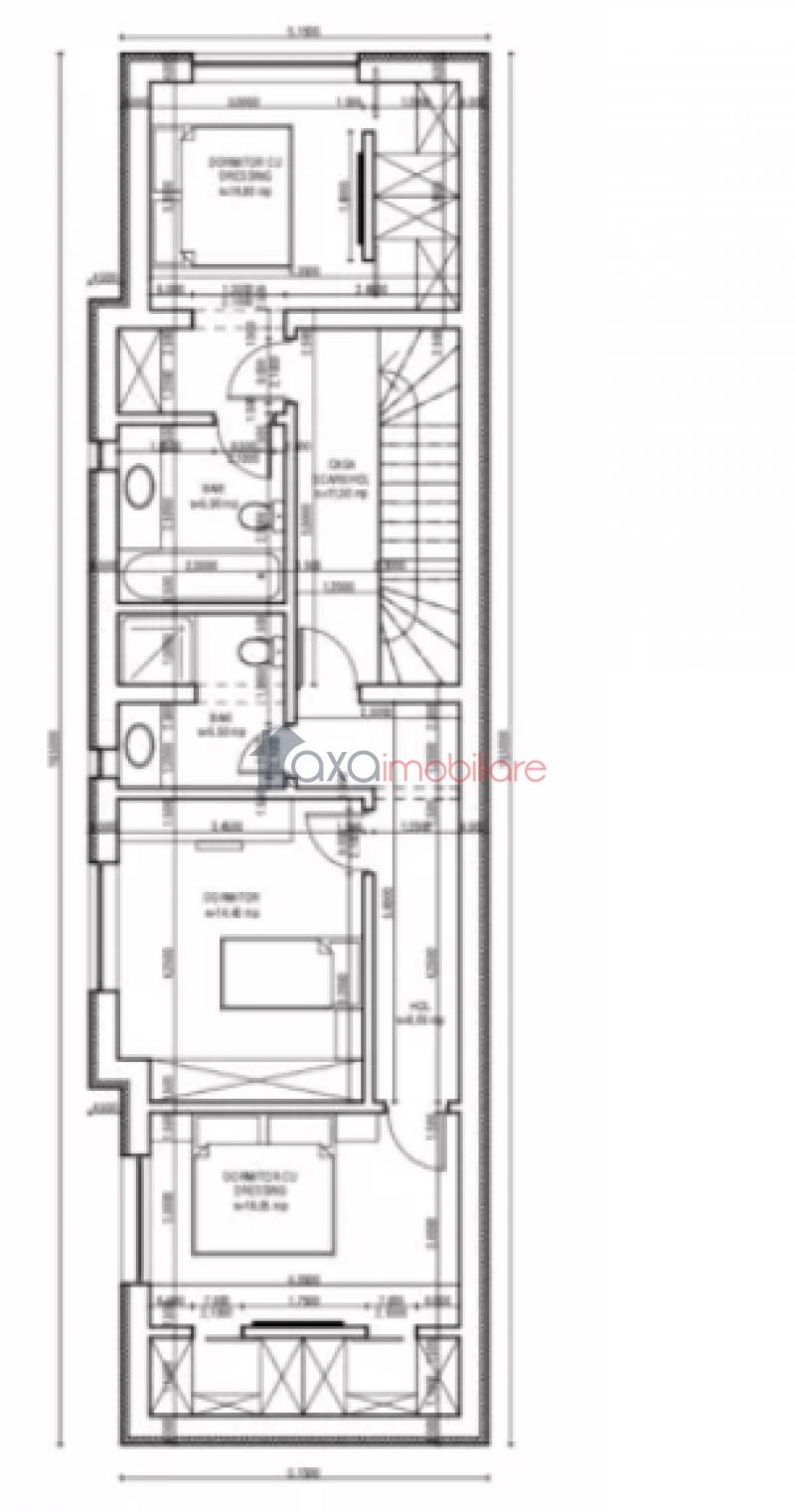 ETAJ: 3 dormitoare (doua din ele au dressing), 2 bai, hol, casa scarii.