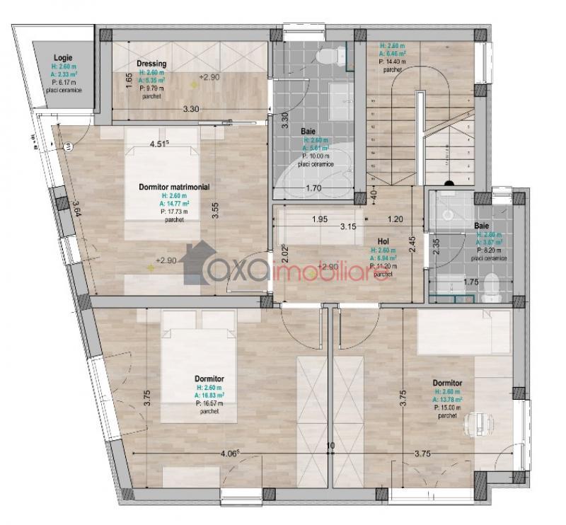 AL DOILEA NIVEL / ETAJ: 3 dormitoare, hol, 2 bai, dressing, 1 logie.