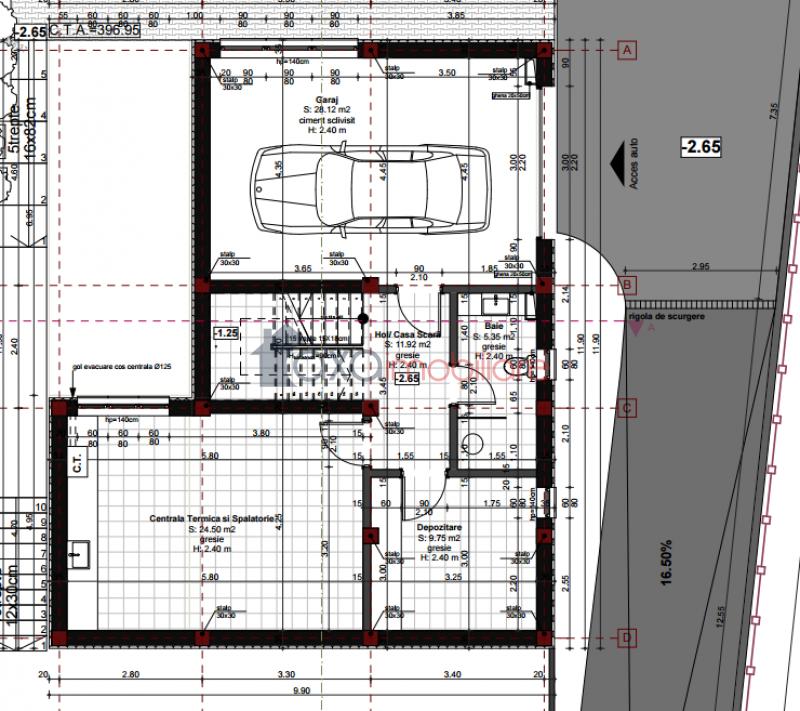 SUBSOL: garaj, baie, camera CT, uscator, magazie; PARTER: hol, living cu loc de luat masa, bucatarie, baie, camara, 1 terasa;