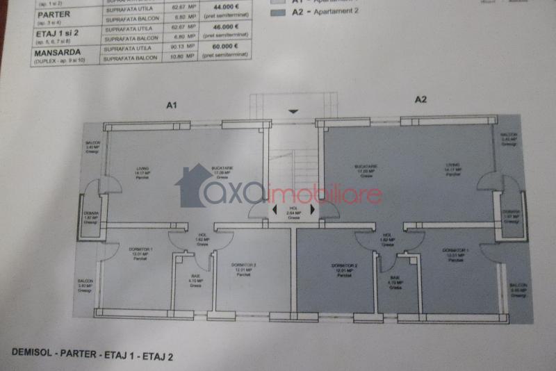 De vanzare apartament cu 3 camere, cu suprafata de 63 mp, imobil nou in faza de constructie.