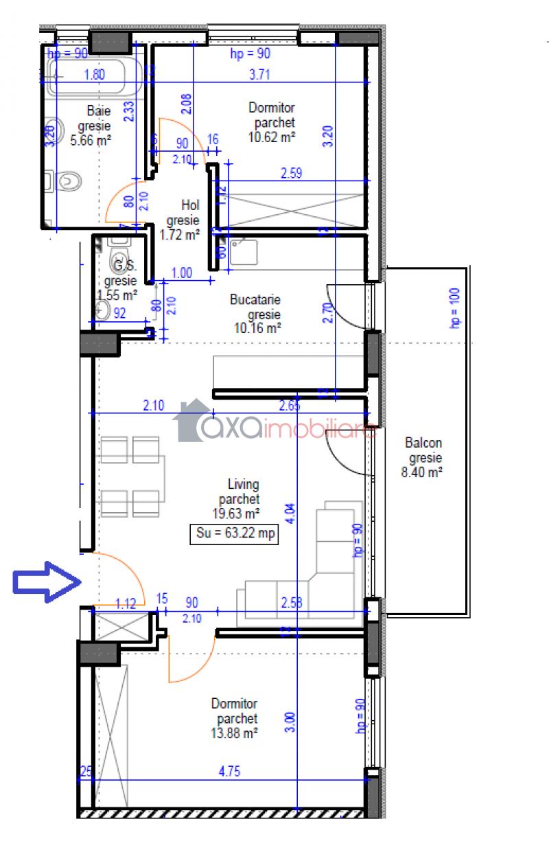 Suprafata utila este de 63.22 mp + 1 balcon de 8.40 mp.