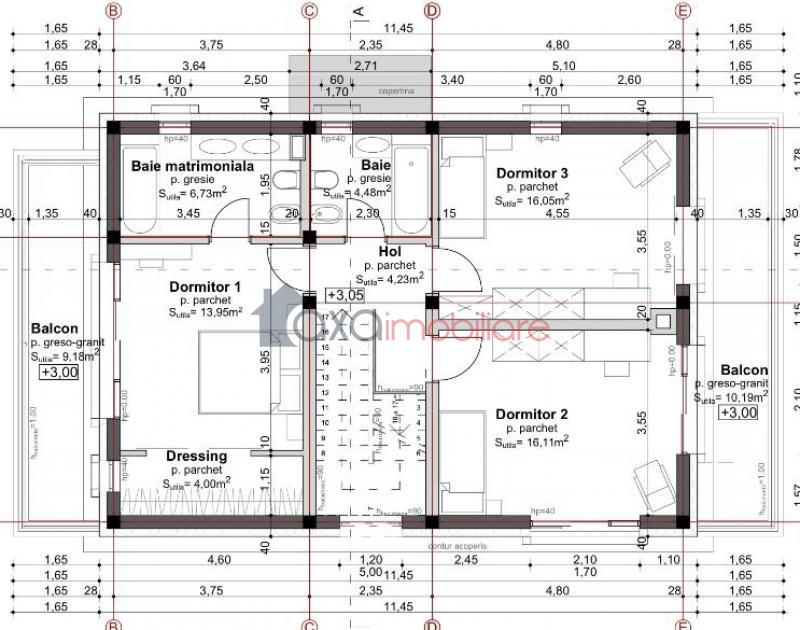* ETAJ: 3 dormitoare (unul din dormitoare este matrimonial), 2 bai, 2 balcoane, 1 dressing, 1 hol.