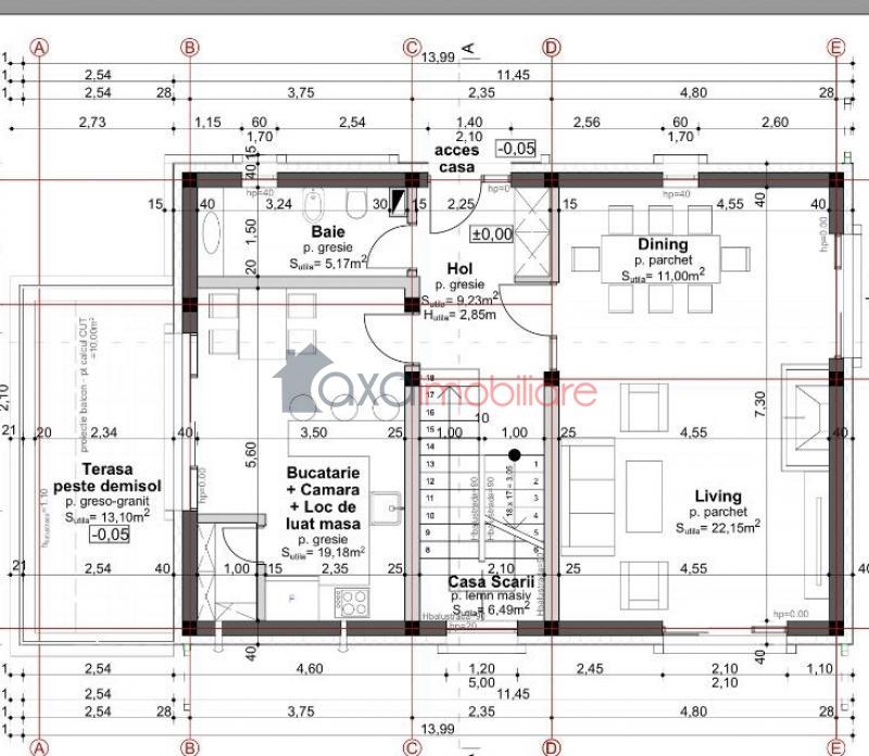 * PARTER: 1 hol, 1 dining, 1 living, 1 bucatarie, 1 camara, 1 loc de luat masa, 1 baie, 1 terasa.