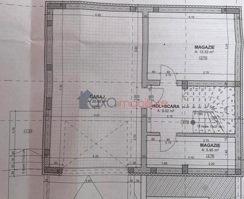 DEMISOL: 1 garaj, 2 magazii, 1 hol + casa scarii.