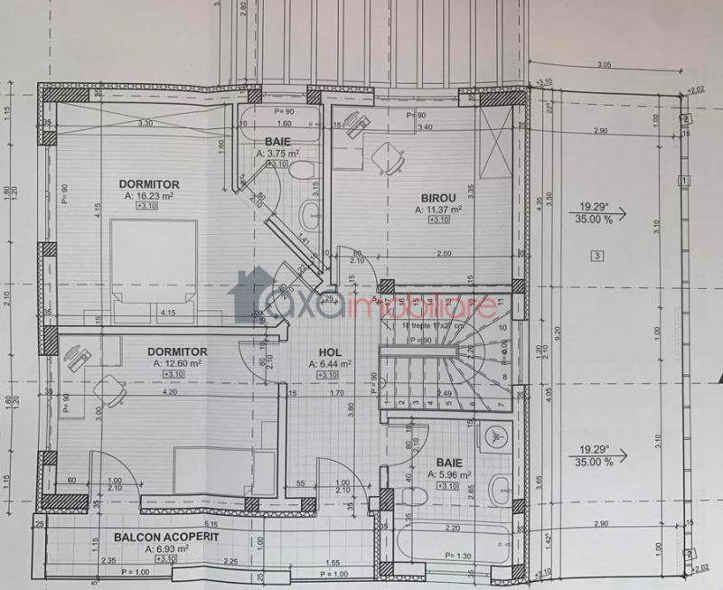 ETAJ: 3 dormitoare, 2 bai, 1 hol, 1 balcon.