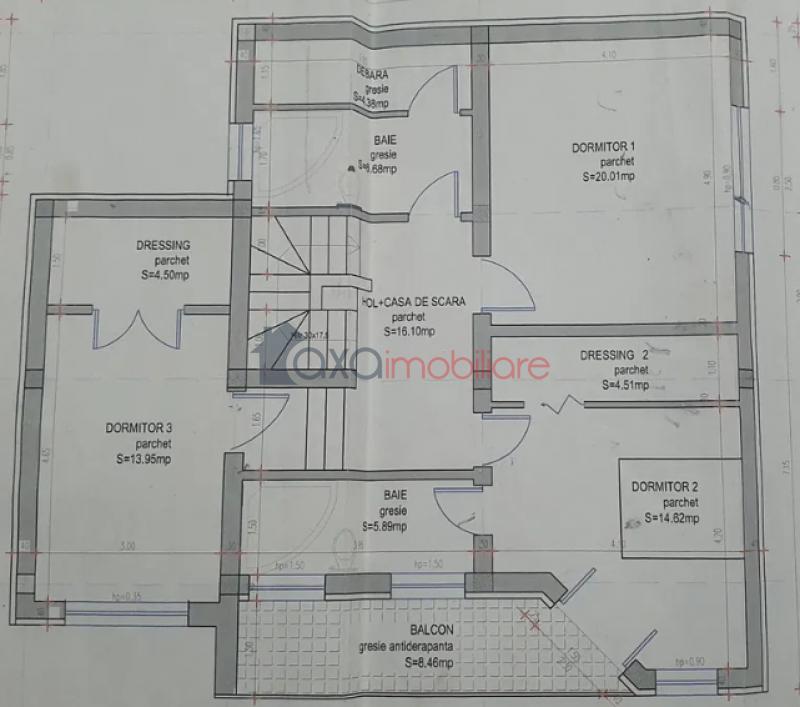 ETAJ / AL DOILEA NIVEL: hol, 3 dormitoare, 2 bai, 1 debara, 2 dressing-uri, 1 balcon.