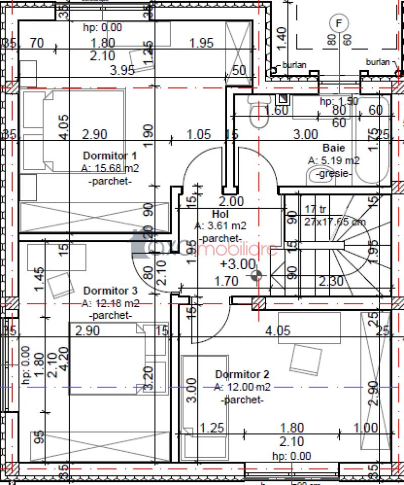 Etaj 1: 3 dormitoare, 1 baie, 1 hol