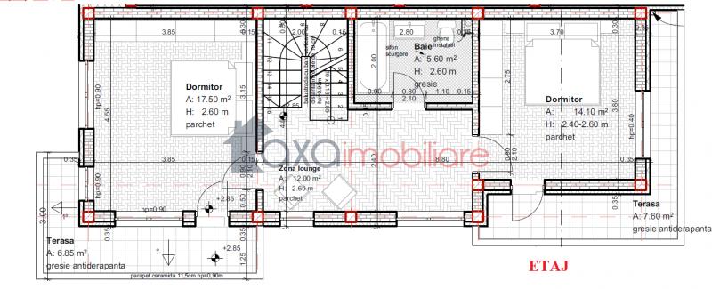 ETAJ: zona lounge, 2 dormitoare, 1 baie, 2 terase.