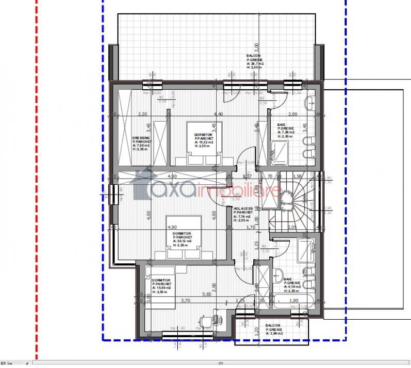 - 1 dormitor matrimonial 15,32 mp ( acesta detine baie proprie 7,06 mp , dressing 7,59 mp, balcon 26,70 mp )
